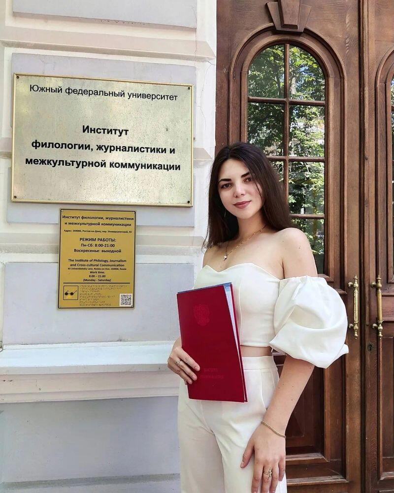 - Южный федеральный университет, ИФЖиМКК, международный журналист, бакалавр, 2016–2020 гг.
