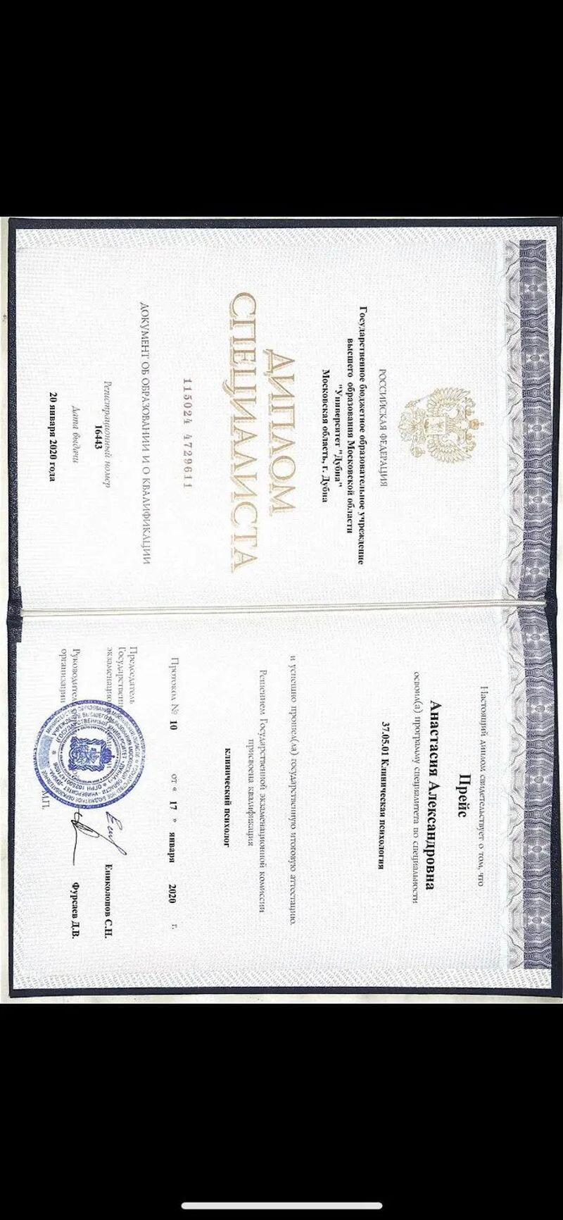 - Государственный университет «Дубна», кафедра клинической психологии, 2014–2020 гг.