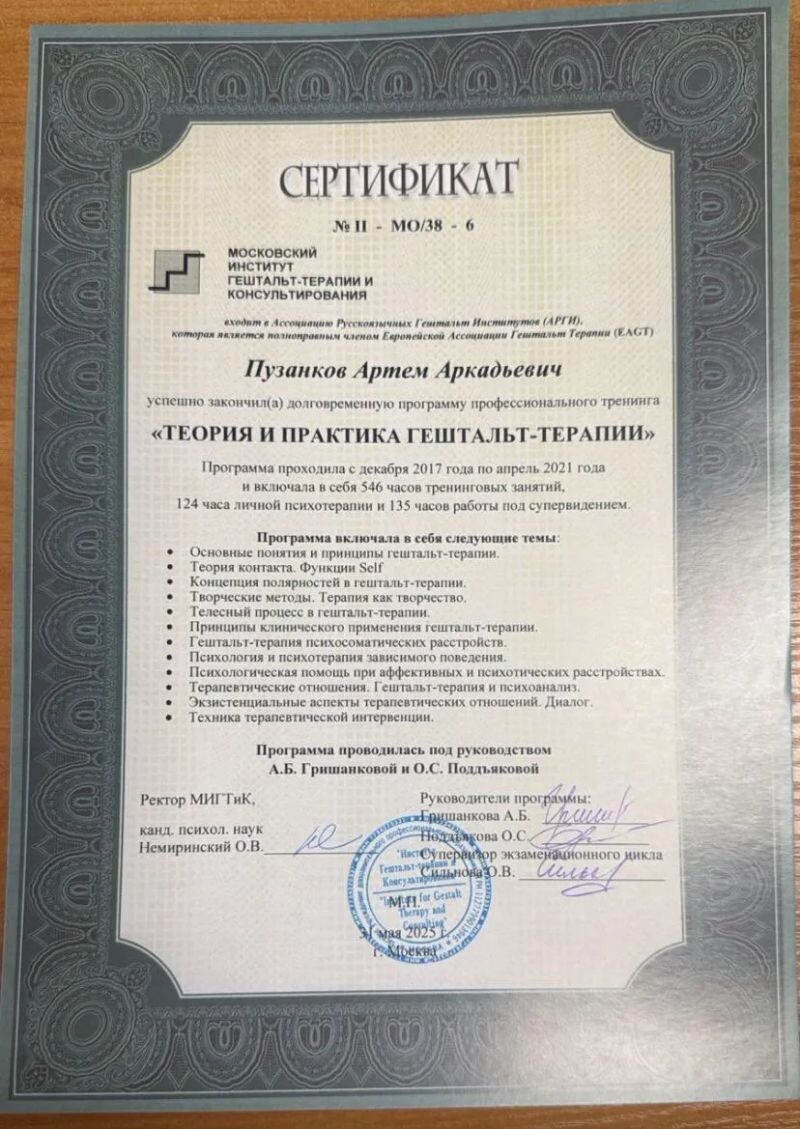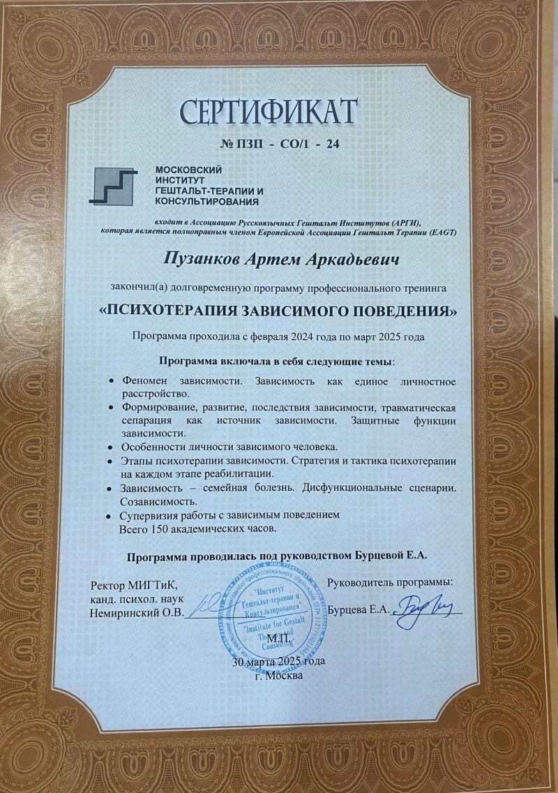 - МИГТиК, психотерапия зависимого поведения, 2024–2025 гг.