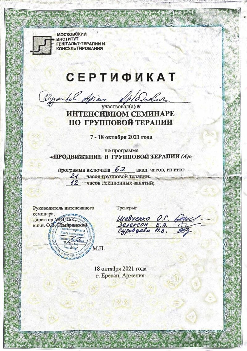 - МИГТиК, продвижение в групповой терапии, 2021 г.