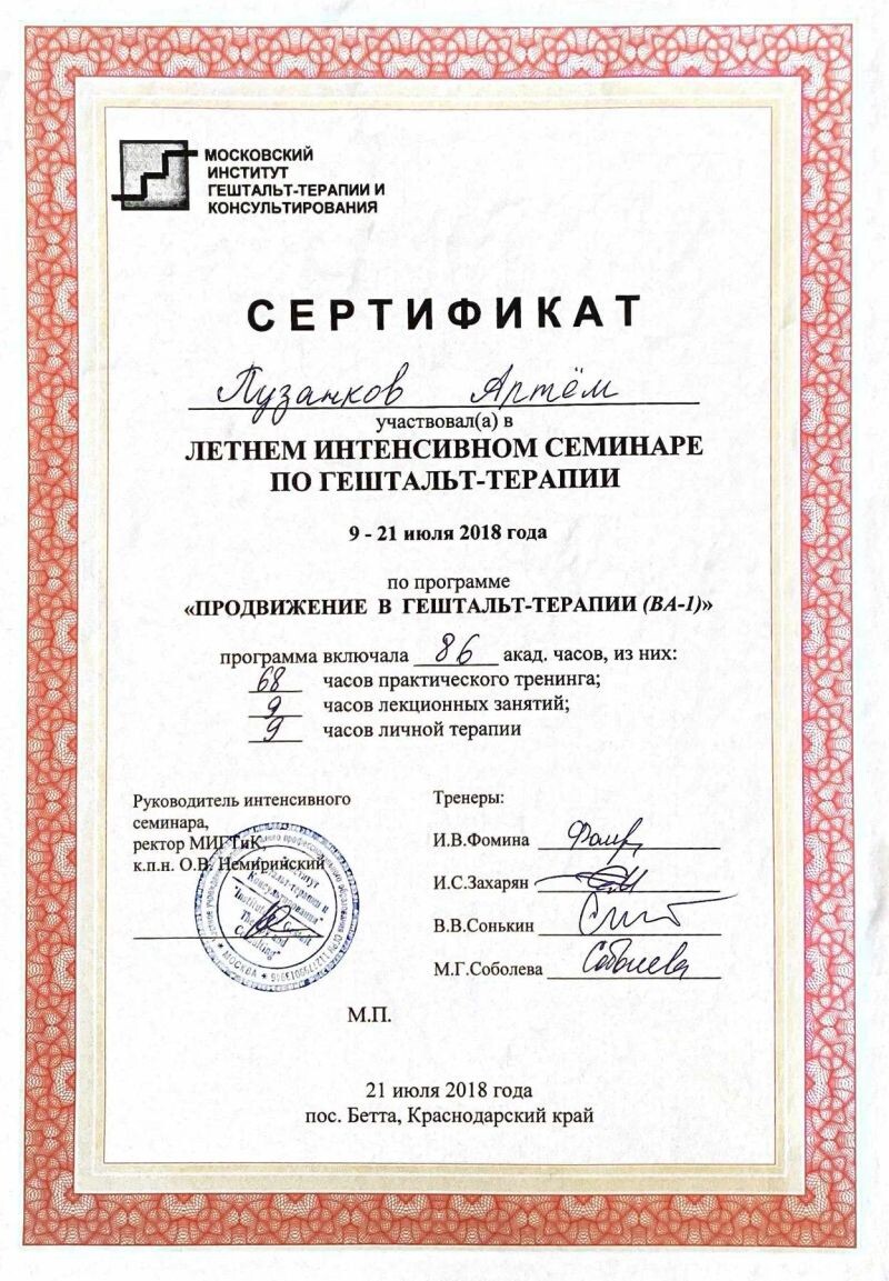 - МИГТиК, продвижение в гештальт-терапии, 2018 г.