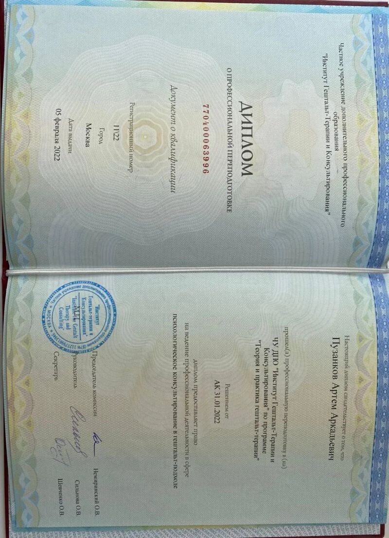 - Институт гештальт-терапии и консультирования, психологическое консультирование в гештальт-подходе, 2020–2022 гг.