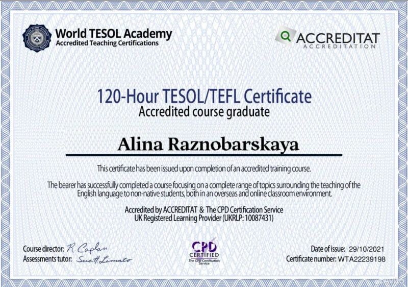 ► Связаться с Разнобарской Алиной Николаевной можно за пару минут. Нажмите на кнопку «Связаться с репетитором» и заполните короткую форму.