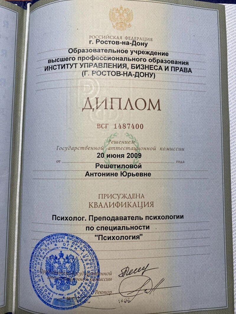 ► Решетилова Антонина Юрьевна принимает территориально: г. Ростов-на-Дону, а также проводит онлайн-консультации.