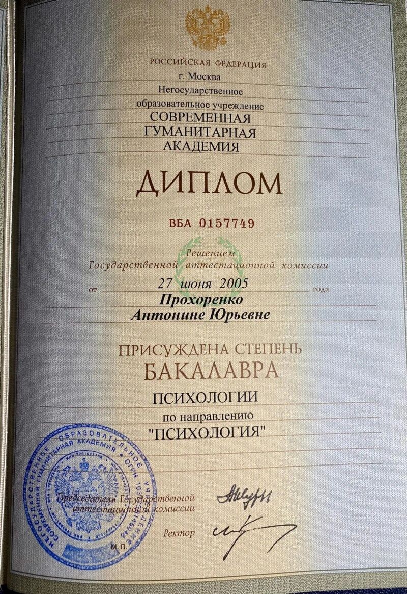 - Современная гуманитарная академия, психология, 2001–2005 гг.