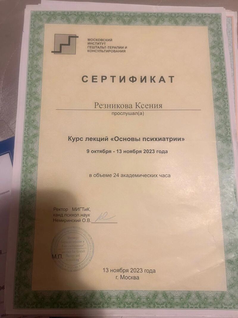 - Московский институт гештальт-терапии и консультирования, курс лекций «Основы психиатрии», 2023 г.