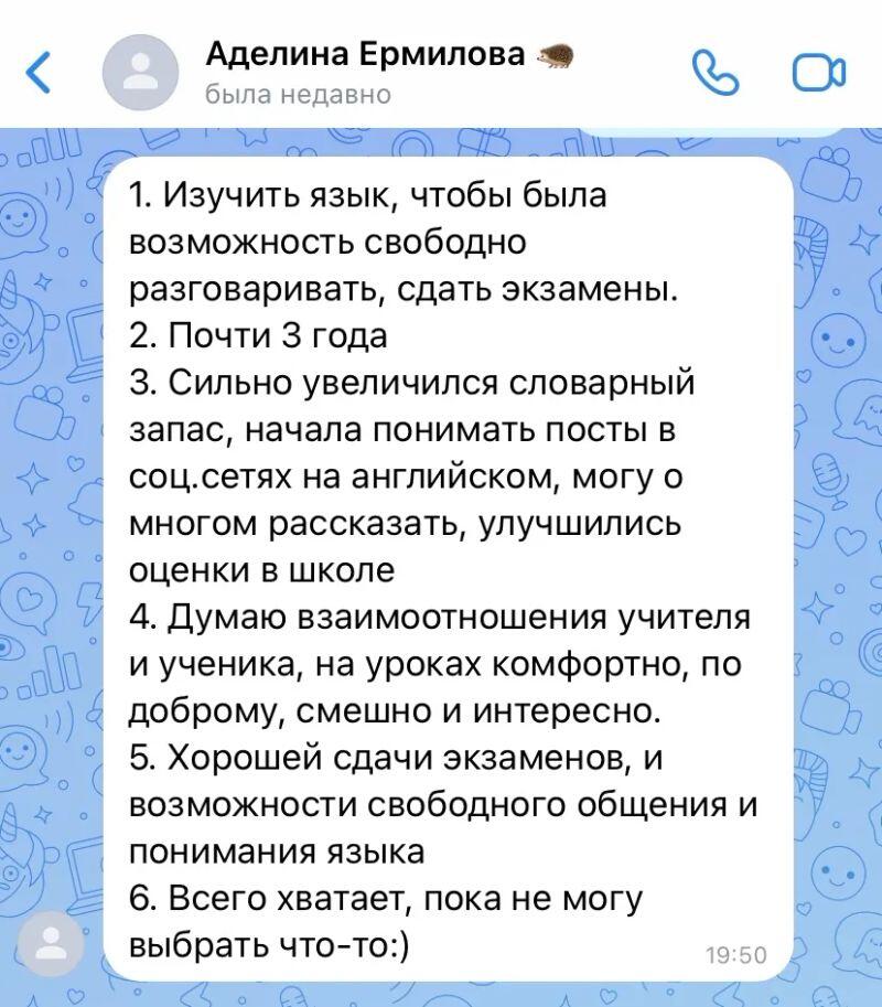 Очень приятно сотрудничать с Валерией. Она владеет языком и психологией подростков на высоком уровне. Рекомендую 👍🏻