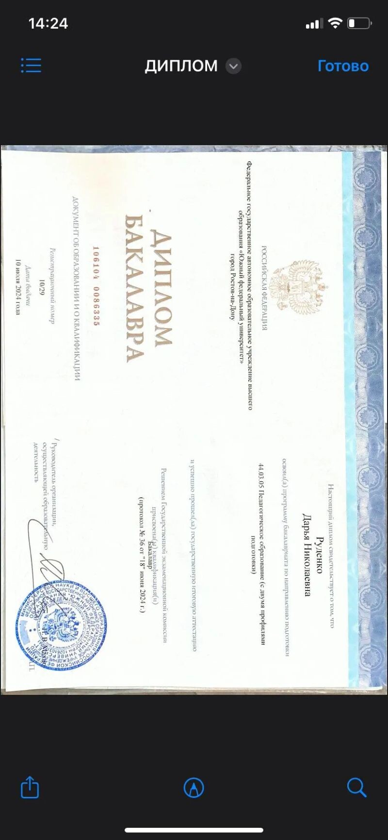 - Диплом бакалавра (с 2024 г.).