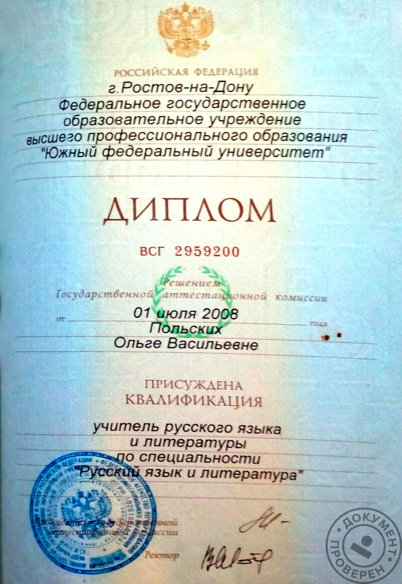 - Выпускница филологического факультета ЮФУ, филологический факультет, преподаватель русского языка и литературы, 2010 г.