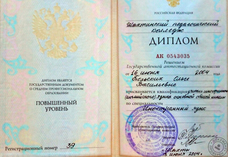 - Окончила Шахтинский педагогический колледж, отделение иностранных языков, учитель английского языка, 2005 г.