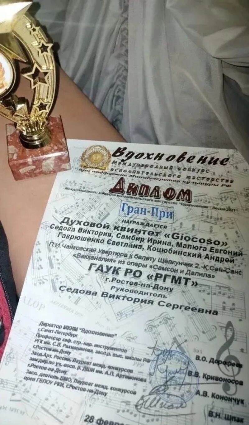 - МКИМ, диплом гран-при международного конкурса исполнительского исполнительского мастерства, 2021 г.
