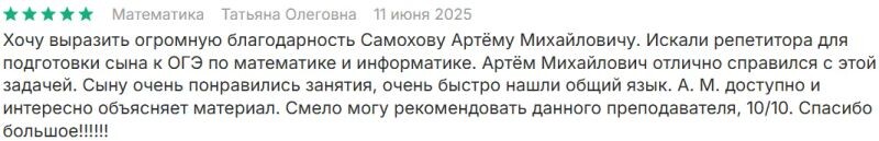 Отзывы о Самохове Артёме Михайловиче