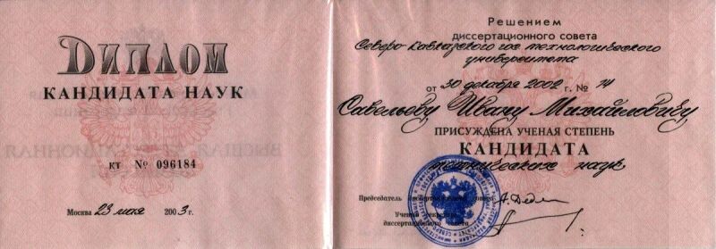 - Южно-Российский государственный технический университет (Новочеркасский политехнический институт), квалификация «инженер», 1996–2001 гг.