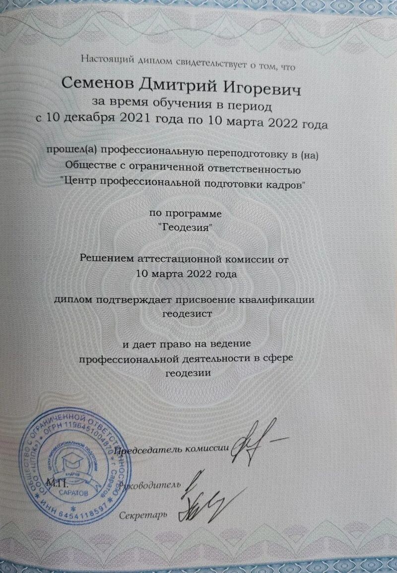 - ООО «Центр профессиональной подготовки кадров», геодезия, 2021–2022 гг.
