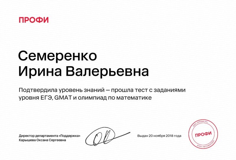 ► Связаться с Семеренко Ириной Валерьевной можно за пару минут. Нажмите на кнопку «Связаться с репетитором» и заполните короткую форму.