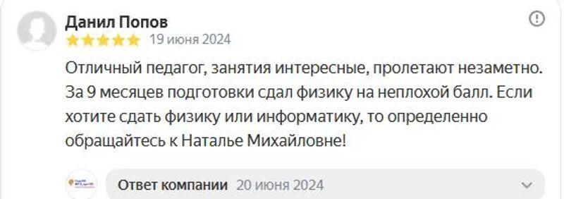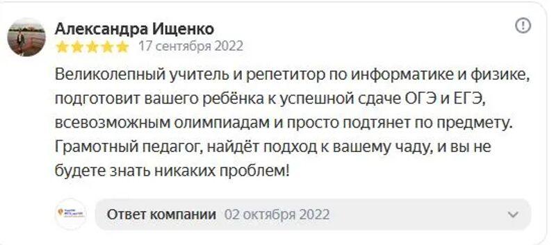 1 ученик уже оставил отзыв — прочитайте, прежде чем выбрать преподавателя.