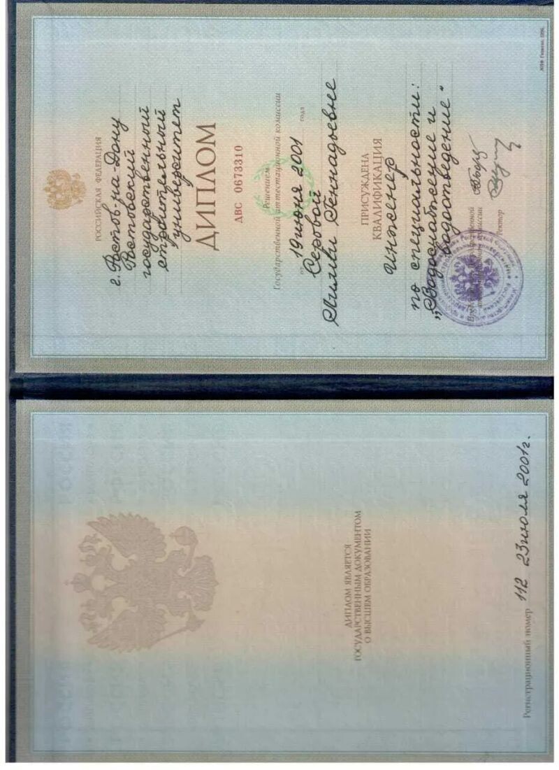 - Ростовский государственный строительный университет, инженер, 1995–2001 гг.