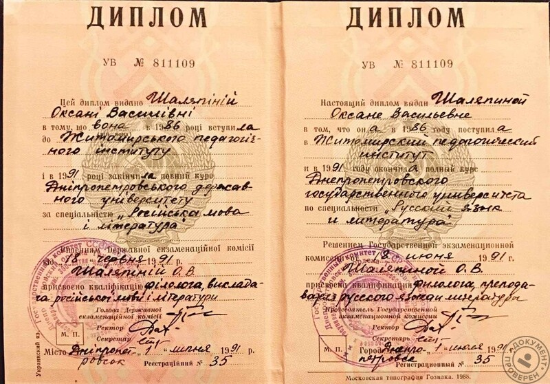 - Окончила Днепропетровский государственный университет, филологический факультет, специальность – преподаватель русского языка и литературы (1991 г.).