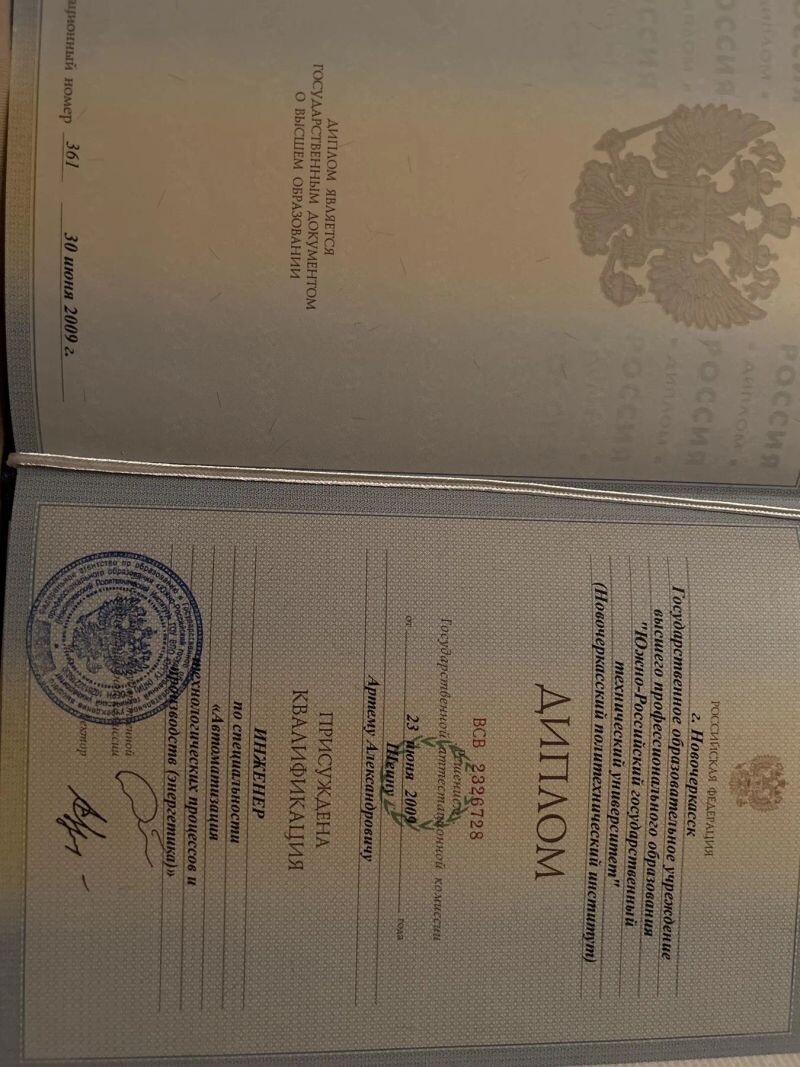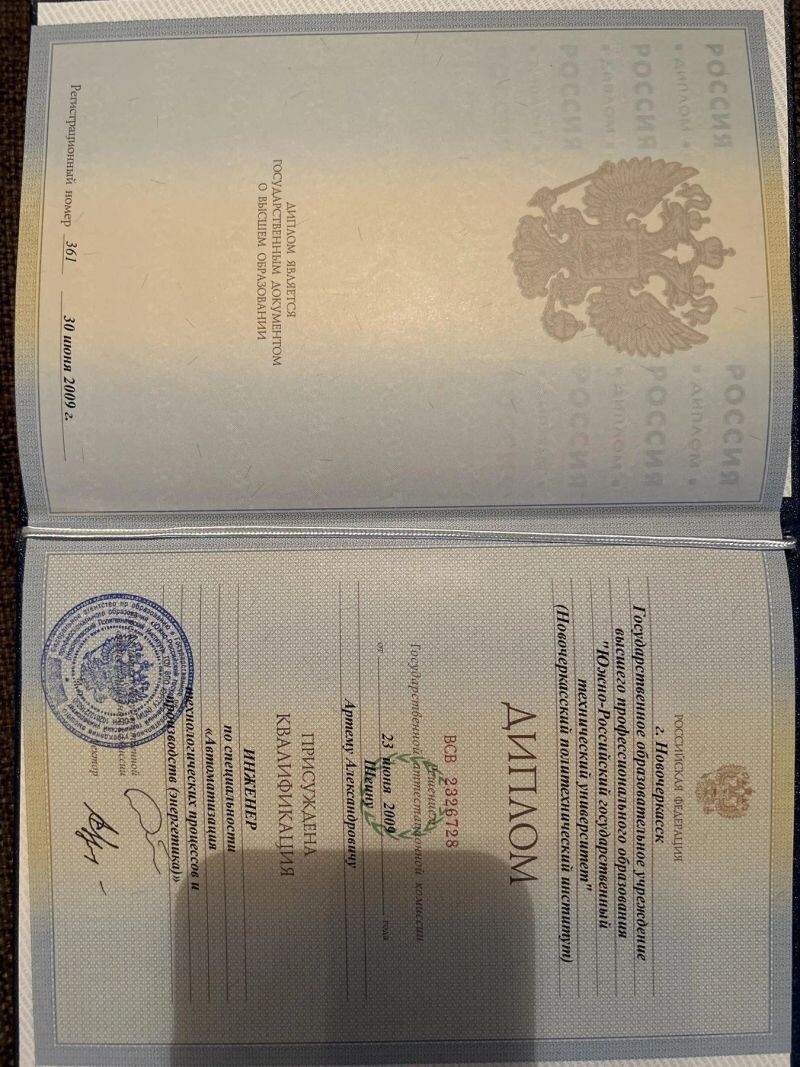 - Южно-Российский государственный технический университет, инженер, 2004–2009 гг.