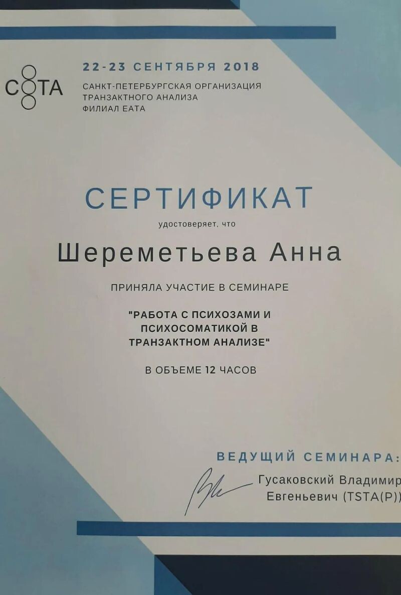 - Работа с психозами и психосоматикой в транзактном анализе, 2018 г.