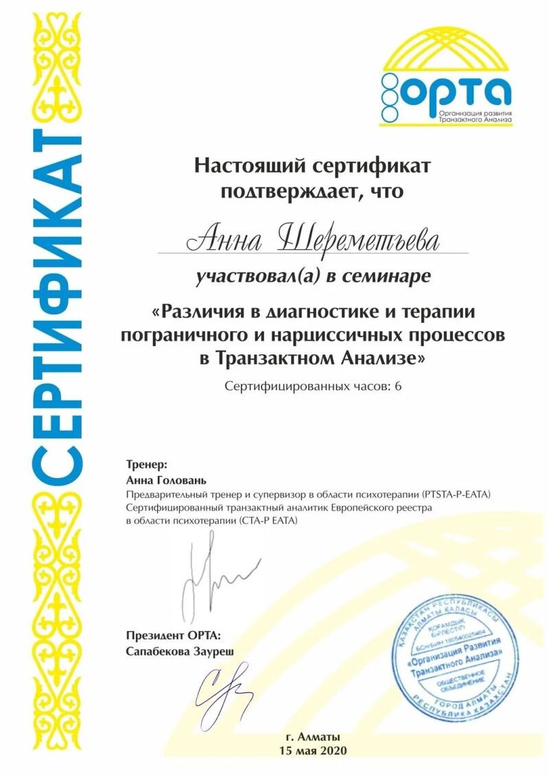 - Различия в диагностике и терапии пограничного и нарциссичных процессов в Транзактном Анализе, 2020 г.