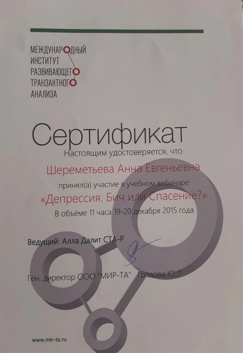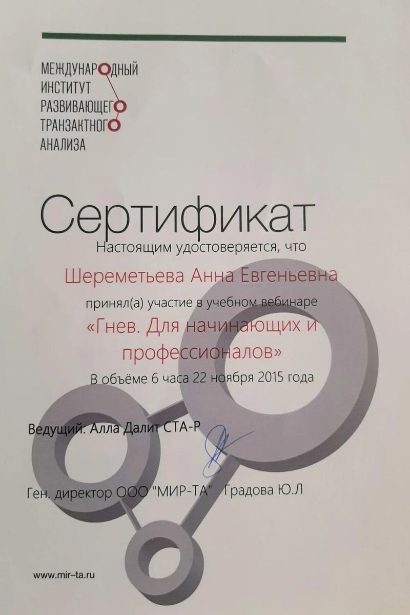 ► Связаться с Шереметьевой Анной Евгеньевной можно за пару минут. Нажмите на кнопку «Связаться со специалистом» и заполните короткую форму.
