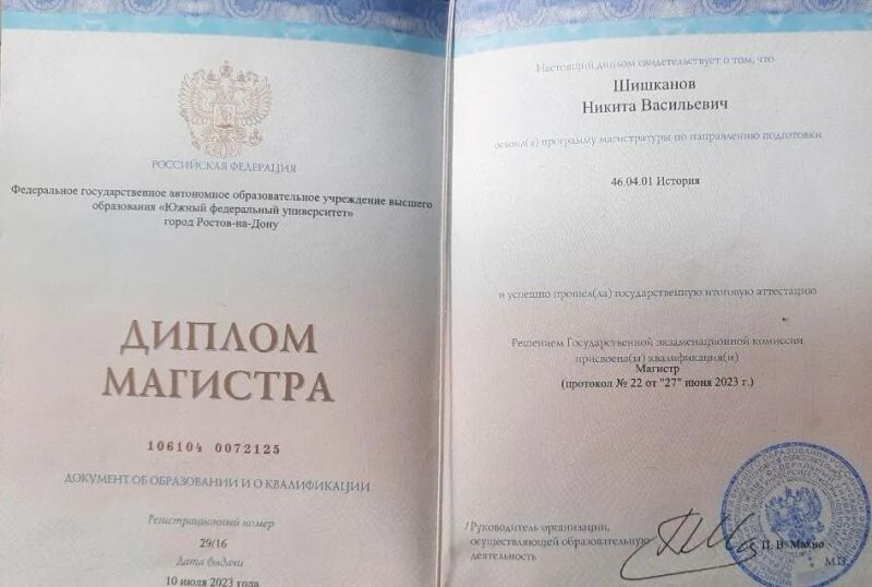- Магистр 46.04.01 История, 2021–2023 гг.