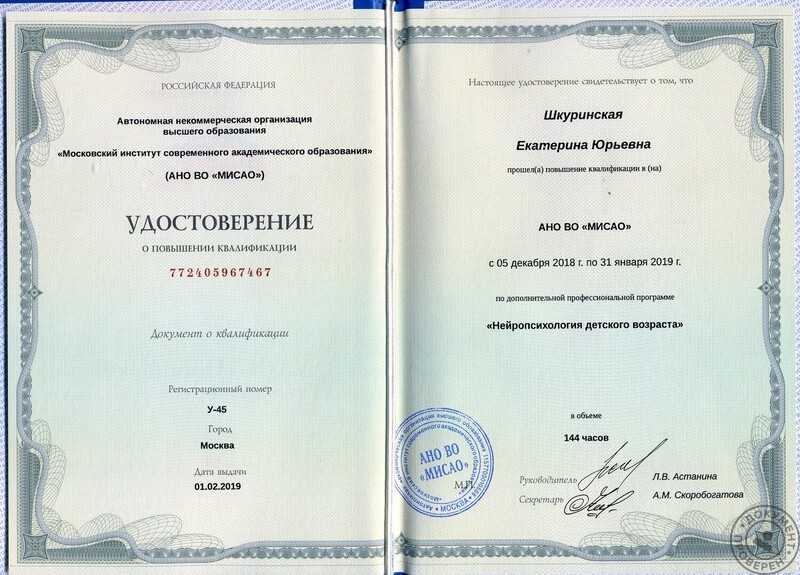 - МИСАО, нейропсихология детского возраста (144 ч.), 2019 г.