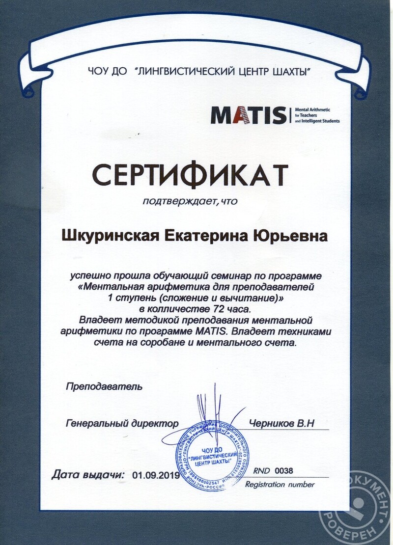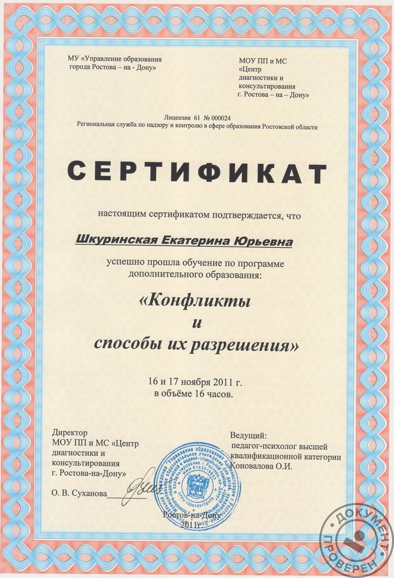 - Ростовский государственный университет. Диплом о профессиональной переподготовке, 2000 г.