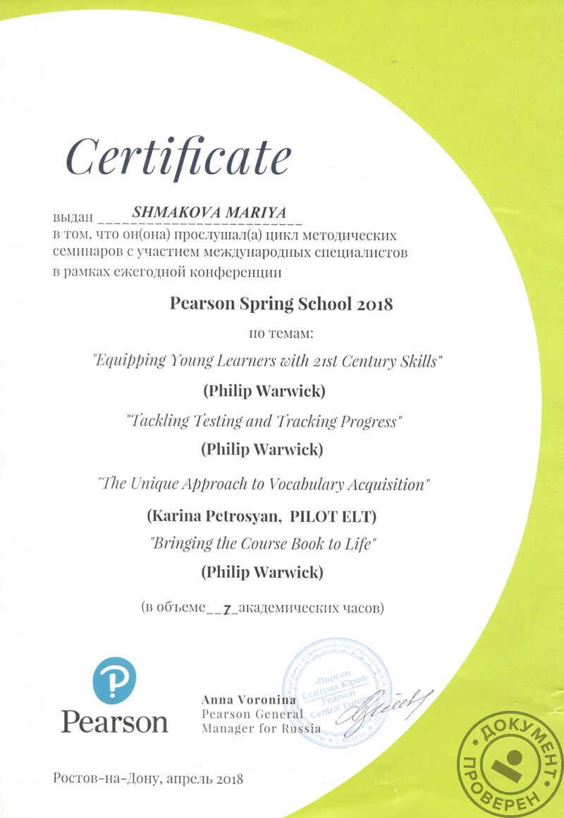 - Участие в конференции Pearson Spring School 2018.