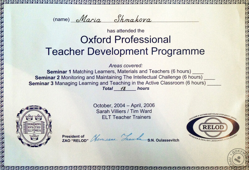 - Курс Oxford Professional Teacher Development Programme, 2004–2006 гг.