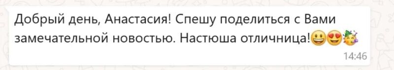 Большое спасибо Анастасии Александровне! За небольшой период занятий она помогла подготовить моего ребенка к 6 классу после пандемии, что сразу сказалось на его успехах. Ребенок с большим удовольствием занимался с ней.