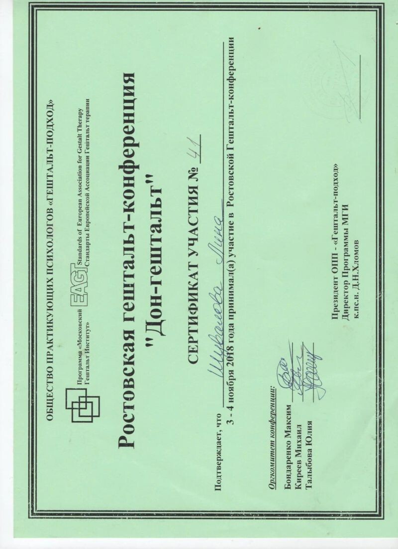 - МГИ, конференция «Дон-гештальт», 2018 г.