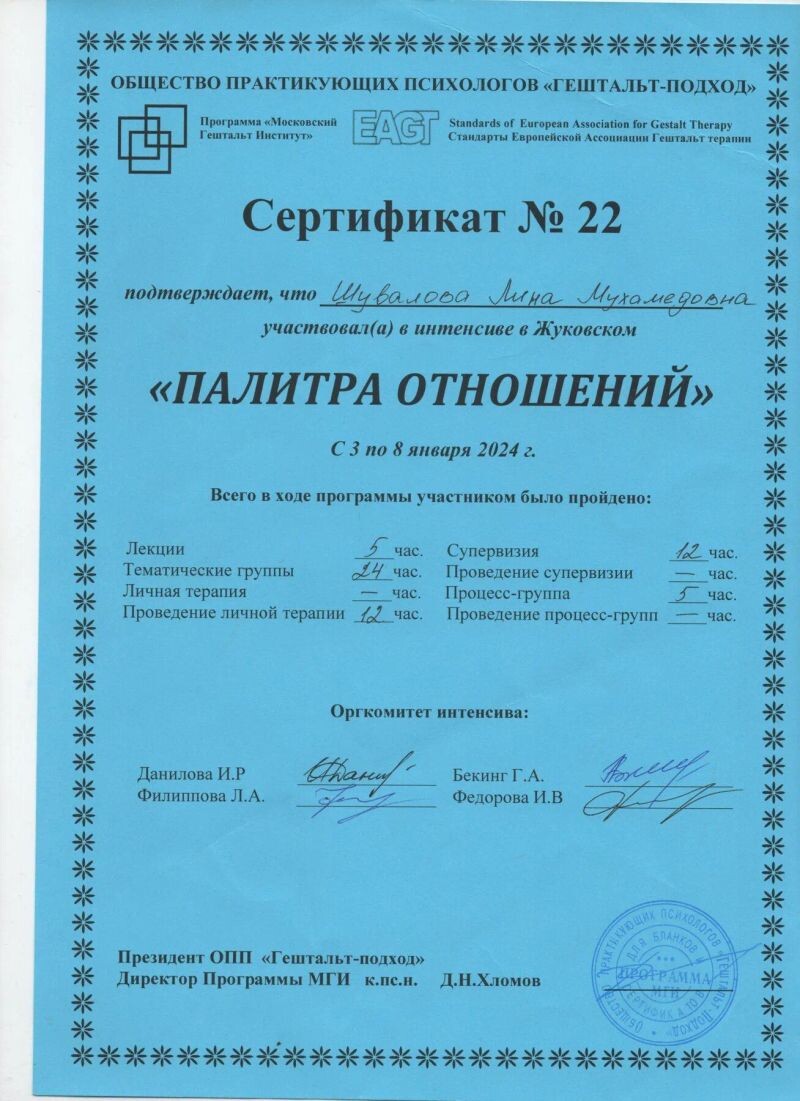 - МГИ, интенсив «Палитра отношений», 2024 г.
