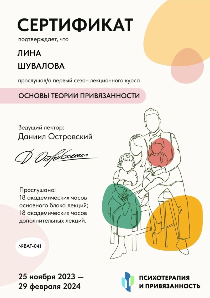 - Даниил Островский, курс «Основы теории привязанности», 2023–2024 гг.