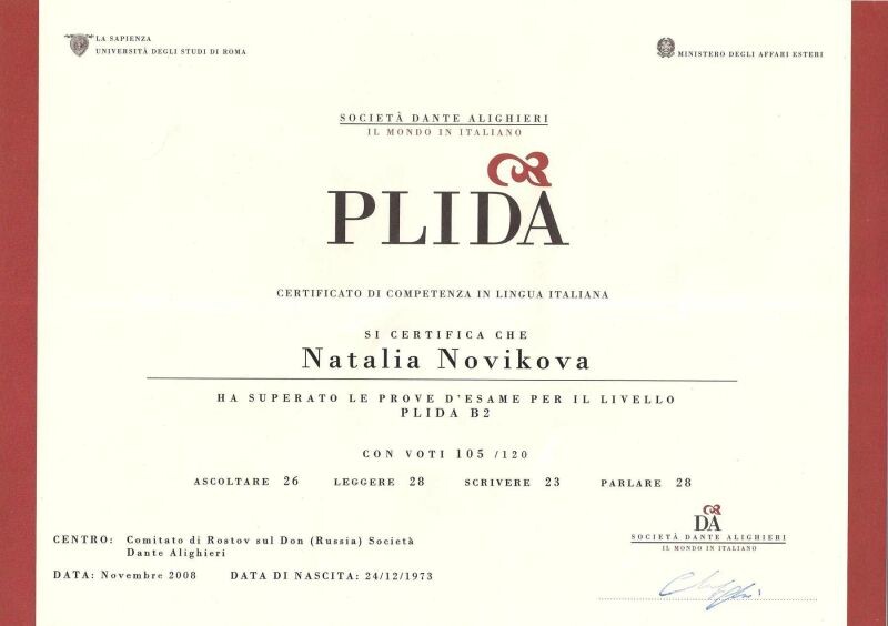 - Международные экзамены по итальянскому 1500 ₽ за часPLIDA