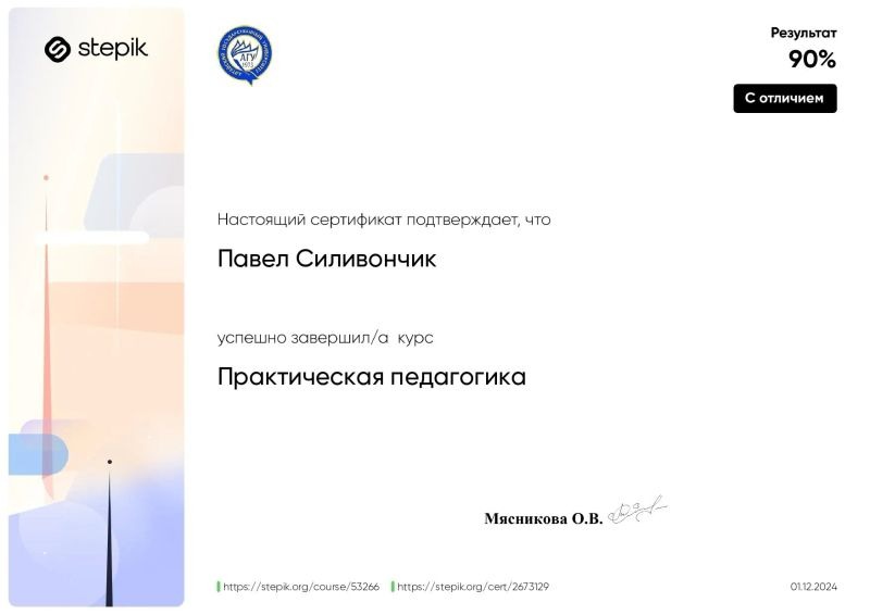 - Алтайский государственный университет, курс «Практическая педагогика», 2024 г.