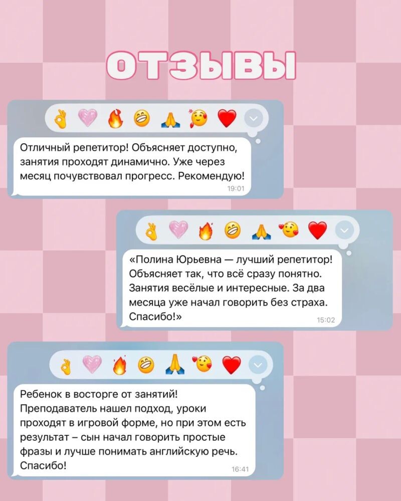 ► Связаться с Скрипниковой Полиной Юрьевной можно за пару минут. Нажмите на кнопку «Связаться с репетитором» и заполните короткую форму.