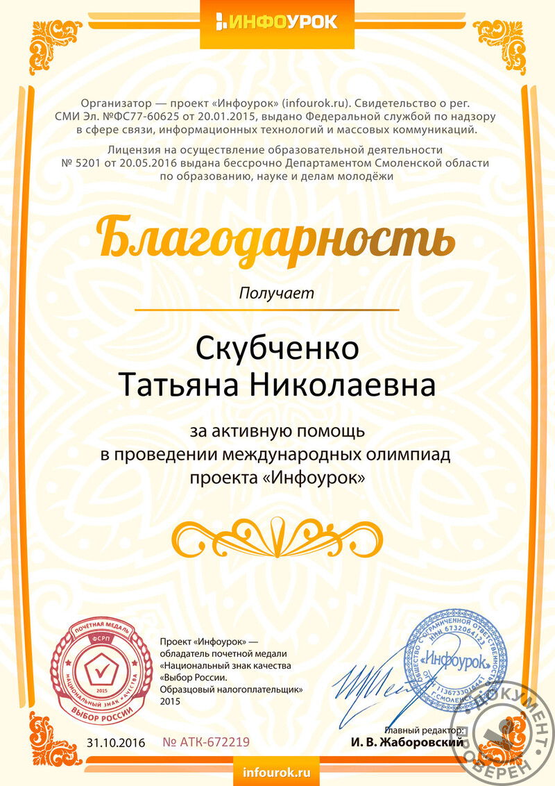 Отзывы о Скубченко Татьяне Николаевне