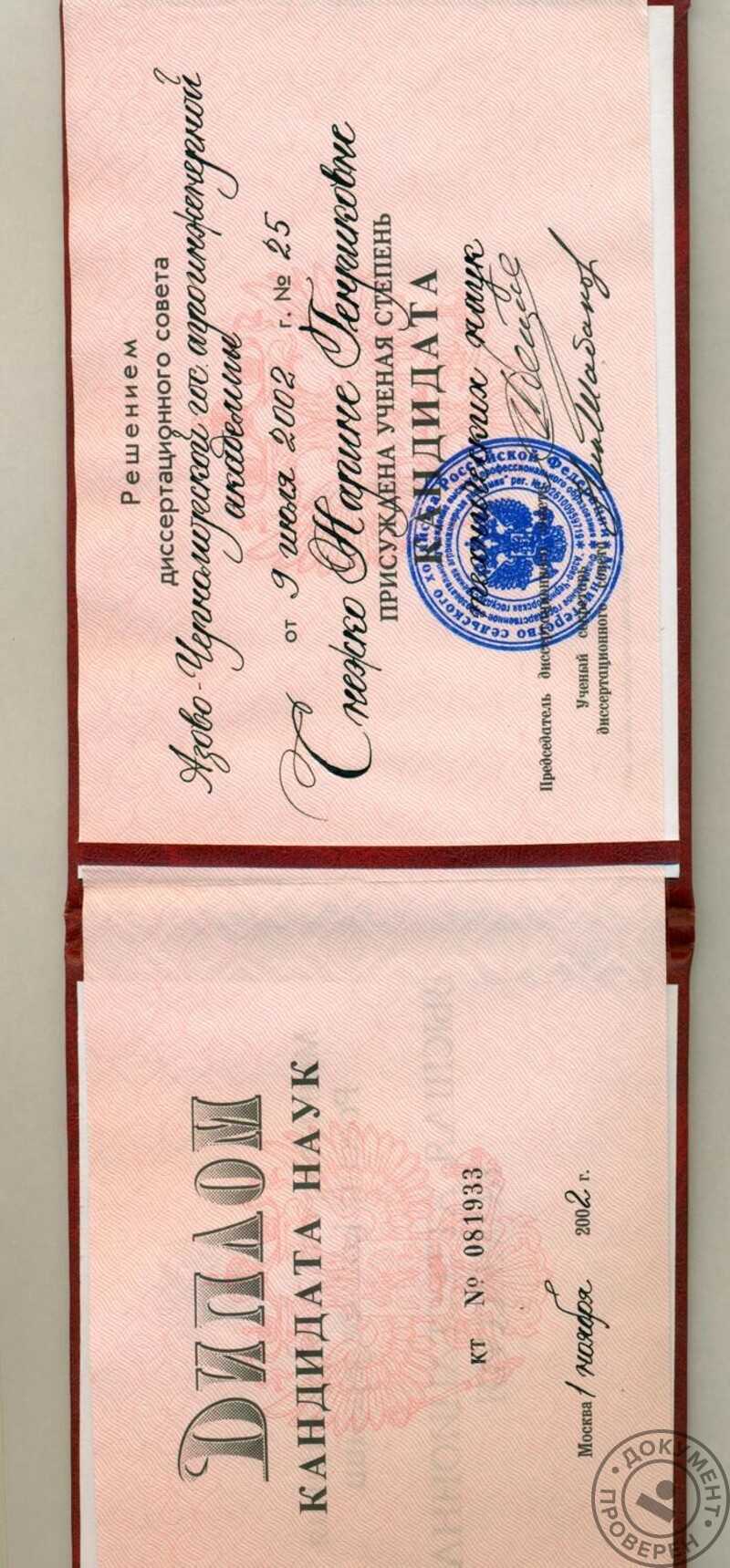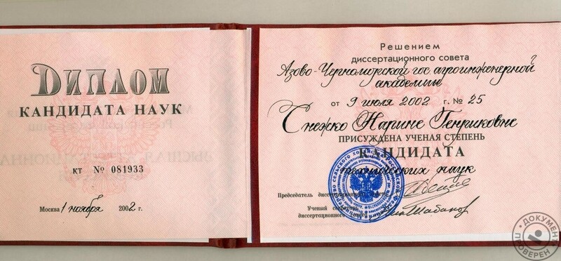 - Окончила Азово-Черноморский институт механизации сельского хозяйства (Зерноград), факультет электрификации сельского хозяйства, специальность – инженер-электрик, 1993 г.