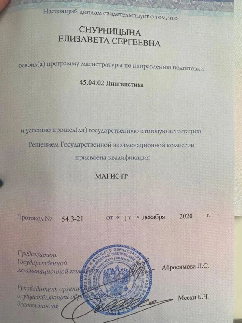 - В 2018 году окончила бакалавриат ЮФУ по специальности «менеджмент».