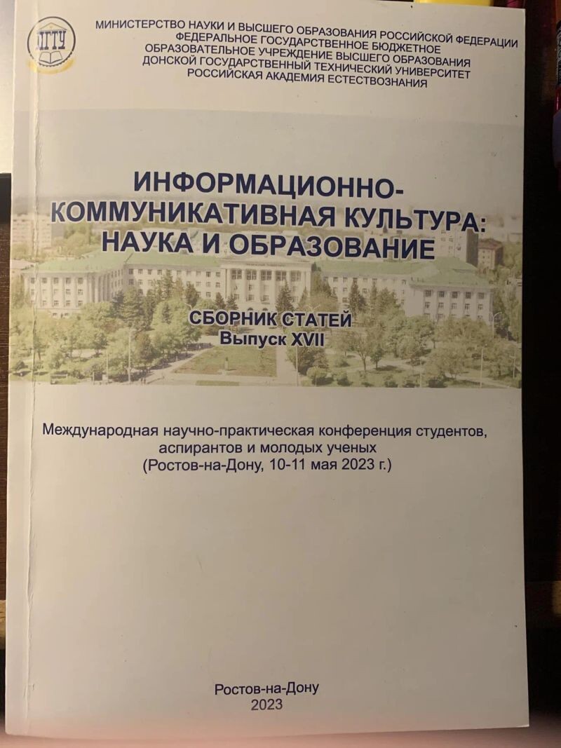 - Информационно-коммуникативная культура:наука и образование Международная научно-практическая конференция студентов,аспирантов и молодых ученых(Ростов-на-Дону,10-11 мая 2023 г.).