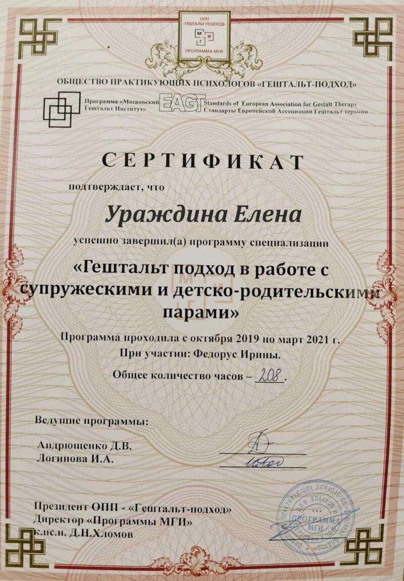 - Московский гештальт институт, Гештальт, 208 часов, 2019–2021 гг.
