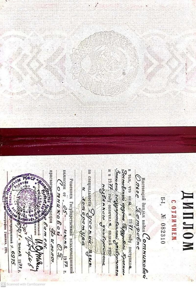 - Ростовский ордена Трудового Красного Знамени государственный университет, русский язык и литература, филолог, преподаватель, 1971–1977 гг.