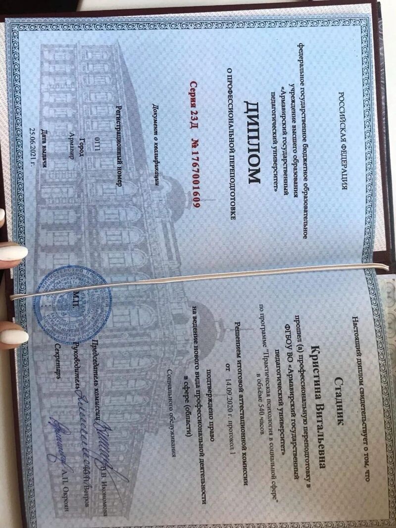 - Армавирский государственный педагогический университет, Психолог, 2020–2021 гг.