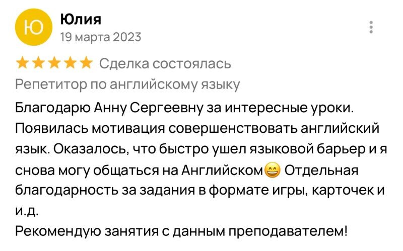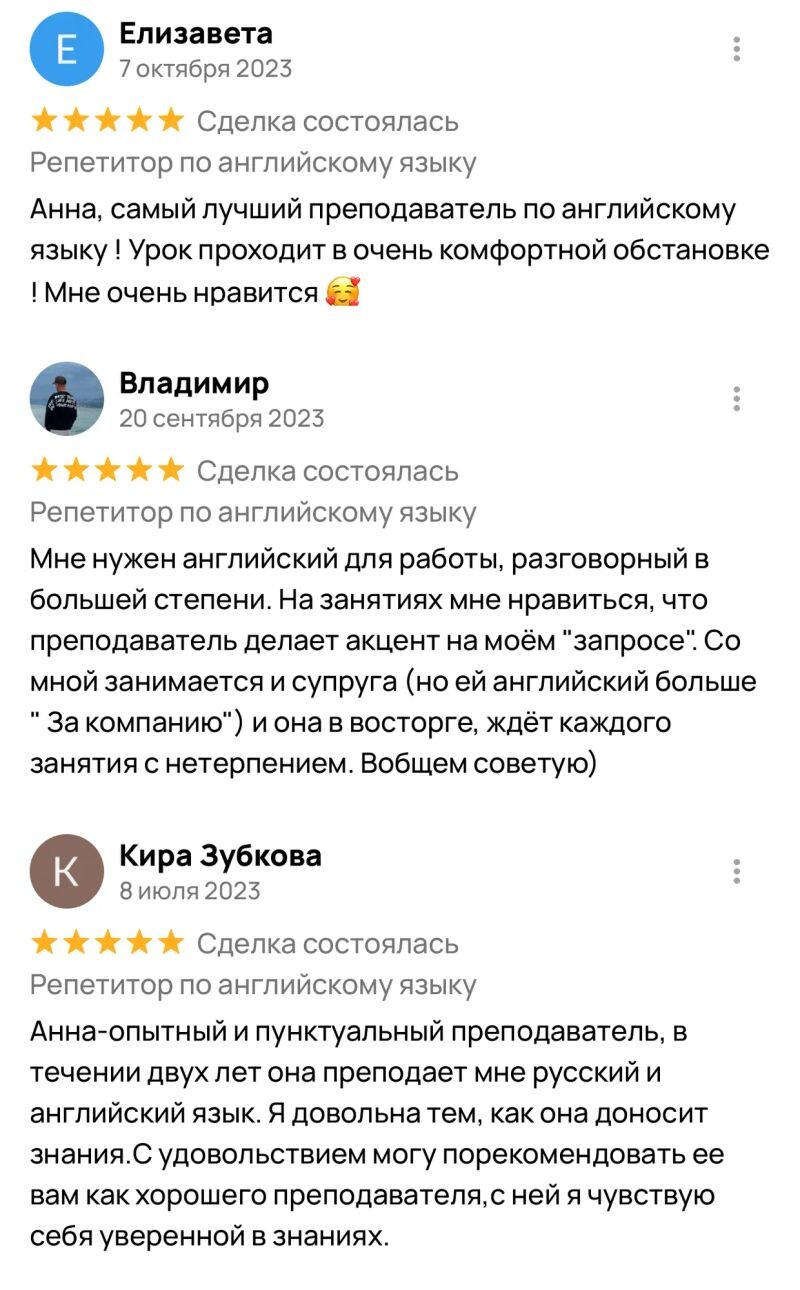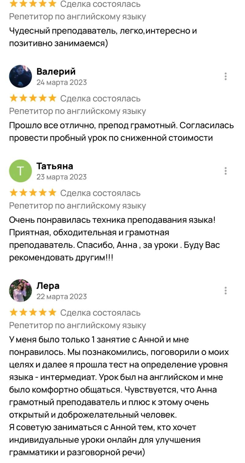 - Репетитор по английскому и русскому языкам — 5 лет.