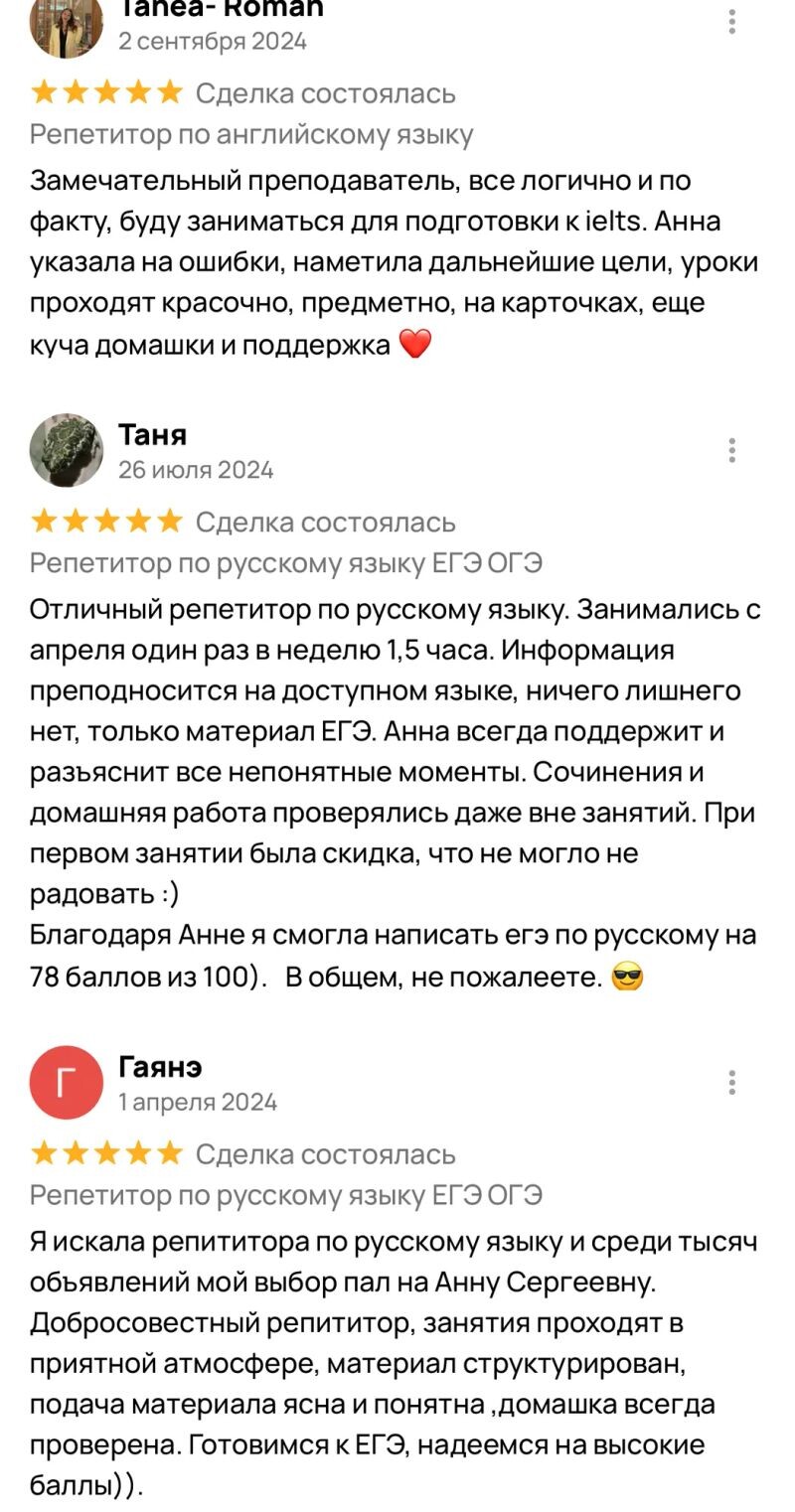 Отзывы о Старостенко Анне Сергеевне