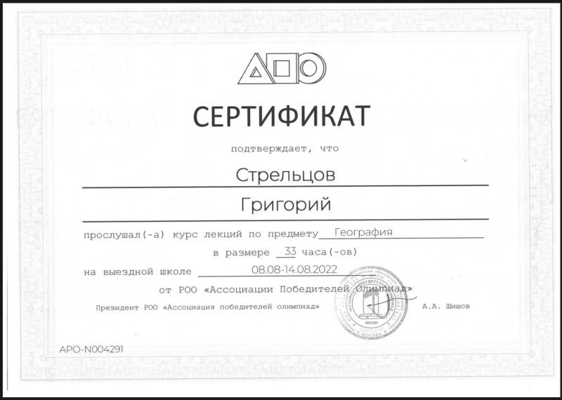 - Олимпиадная подготовка по географии в Ассоциации Победителей Олимпиад (АПО), 2022 г.
