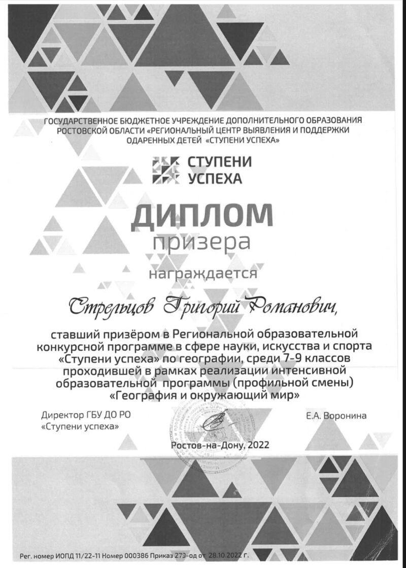 - Призёр олимпиады ЮФУ по географии (с 2022 г.).