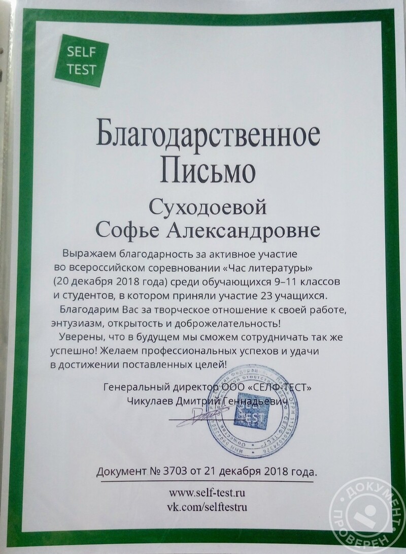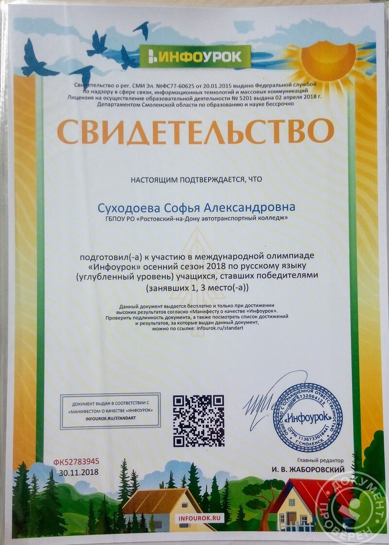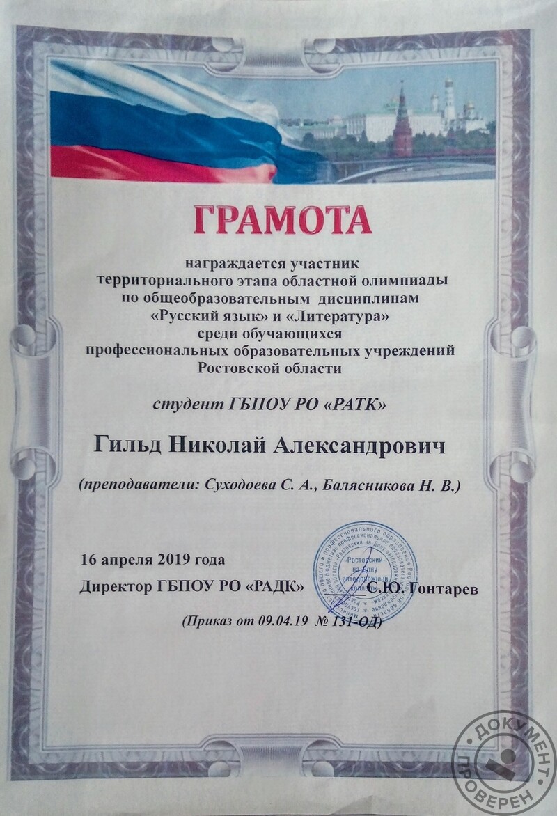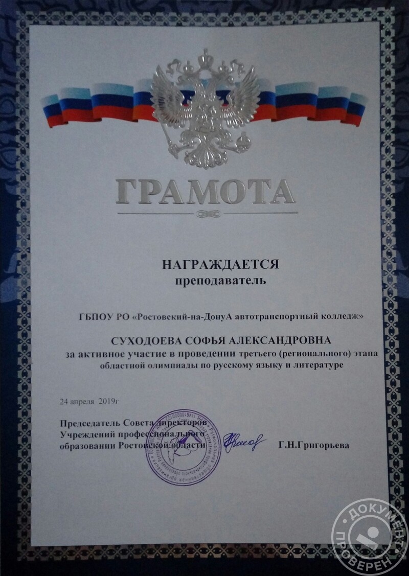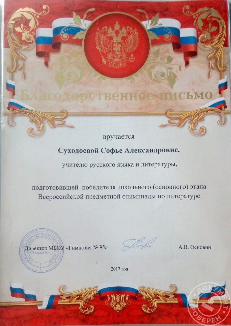 - Обучение по программе дополнительного профессионального образования «Русский язык и литература» по проблеме «Текстовая деятельность обучающихся на уроках русского языка и литературы в процессе реализации ФГОС», 2018 г.
